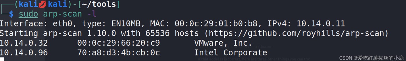 值得注意的是arp-scan与nmap发出的是arp请求嗅探