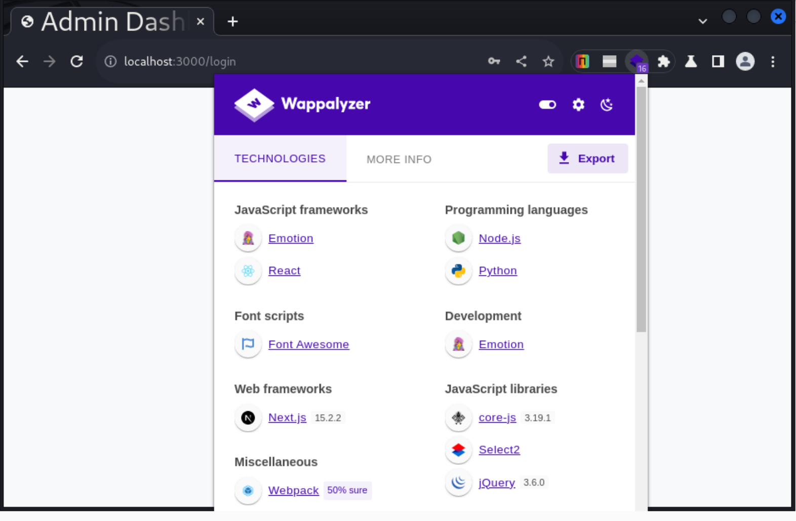 可以看到网站指纹,Next.js 、React、 Python