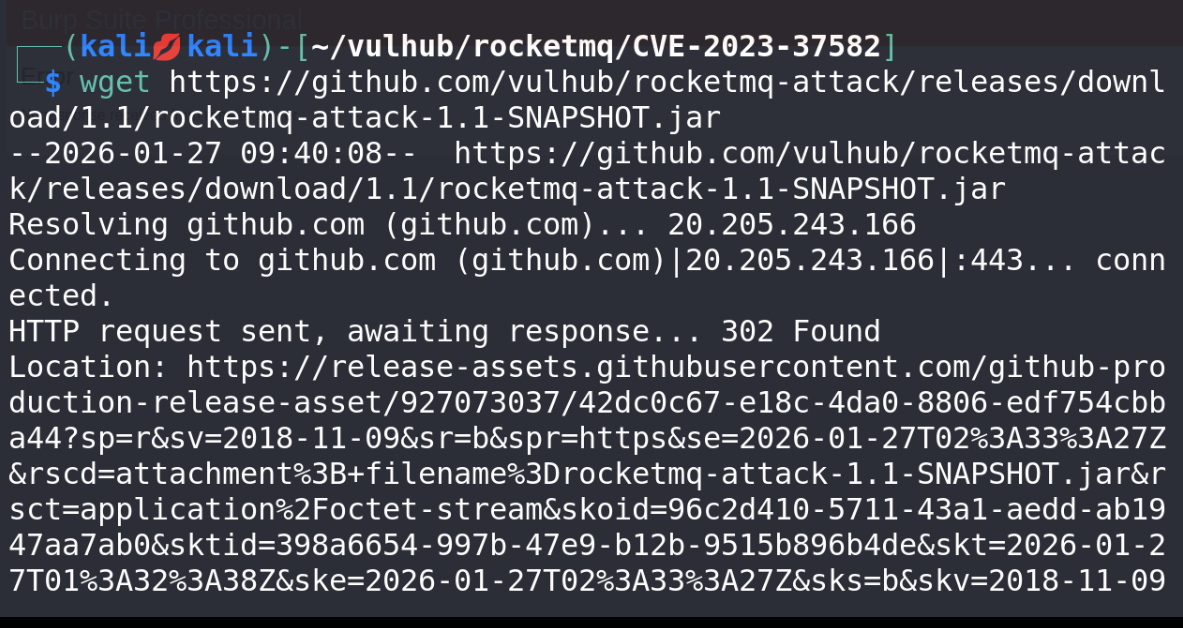 三、靶机环境 1 2 3 4 5 6 7 8 9 10 11 12 13 14 15 ┌──(kali💋kali)-[~/vulhub/ rocketmq/CVE-2023 -37582 ] └─$ cat docker-compose.ymlservices: namesrv: #服务器名称 image: vulhub/rocketmq:5.1 .0 ports: - 9876 :9876 - 5005 :5005 command: ["mqnamesrv" ] broker: #消息代理 image: vulhub/rocketmq:5.1 .0 ports: - 10911 :10911 command: ["mqbroker" , "-n" , "namesrv:9876" , "--enable-proxy" ]